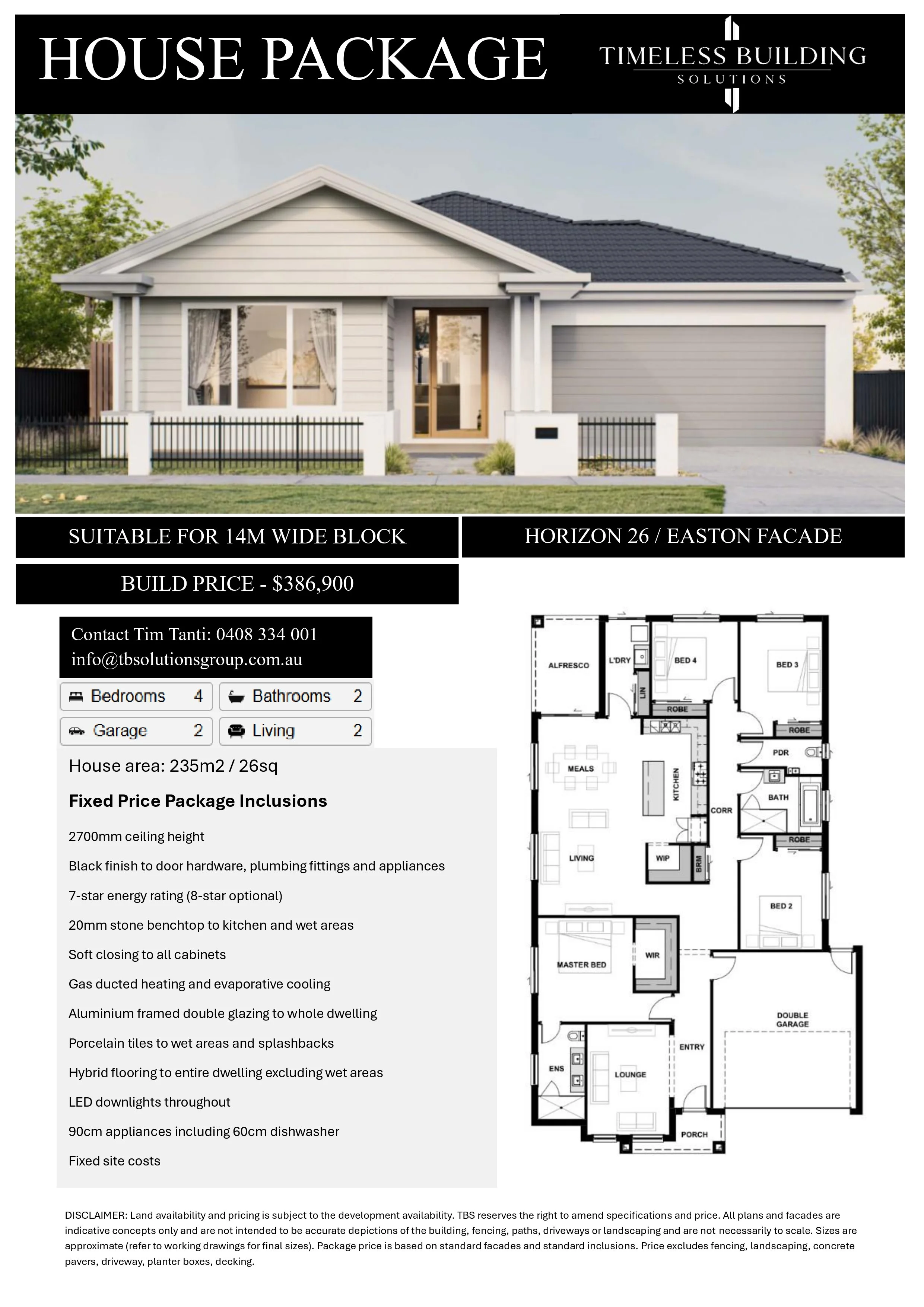 Suitable for 14m Wide Block - $386,900 House Package 4 Nov Written By Aleczander Gamboa Enquire Now house package Aleczander Gamboa https://aleczandergamboa.com